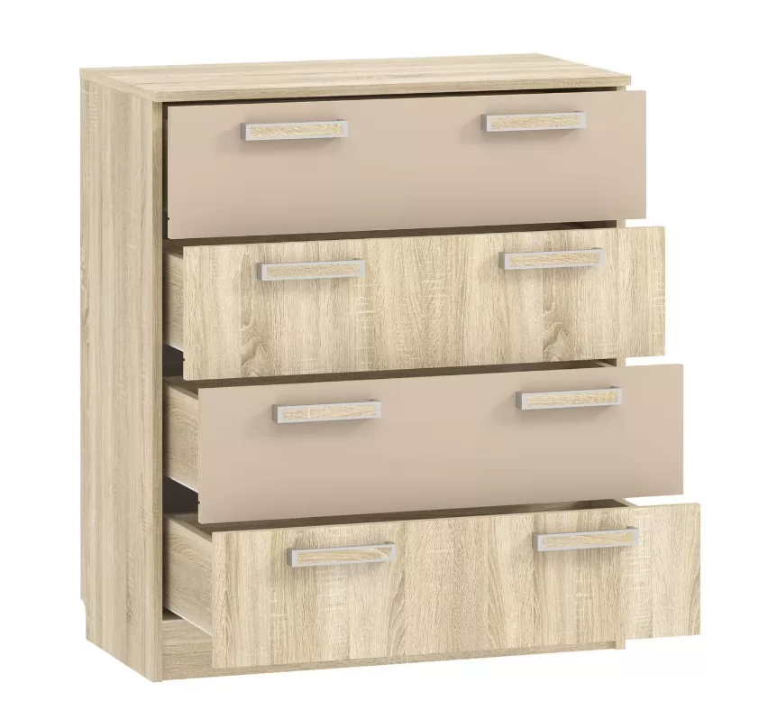 Ширина (мм): 804 Высота (мм): 928 Глубина (мм): 414 Цвет: Капучино/Дуб сонома Материал: ЛДСП Вес, кг: 38.8 Объем, м3: 0.076 Количество упаковок: 2 Гарантия: 24 месяца Коллекция: Акварель Направляющие: Шариковые, полного выдвижения Ручка: С-31, пластиковая с цветной вставкой