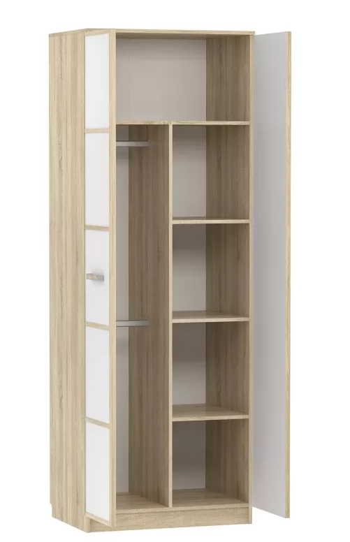 Ширина (мм): 802 Высота (мм): 2256 Глубина (мм): 574 Цвет: Белый/Дуб сонома Материал: ЛДСП/МДФ Вес, кг: 87 Объем, м3: 0.194 Количество упаковок: 3 Гарантия: 24 месяца Коллекция: Фанк Петли: Накладная 90 Ручка: С-31, ручка-скоба пластик Наличие ящиков: Нет Количество дверей: Двухдверный