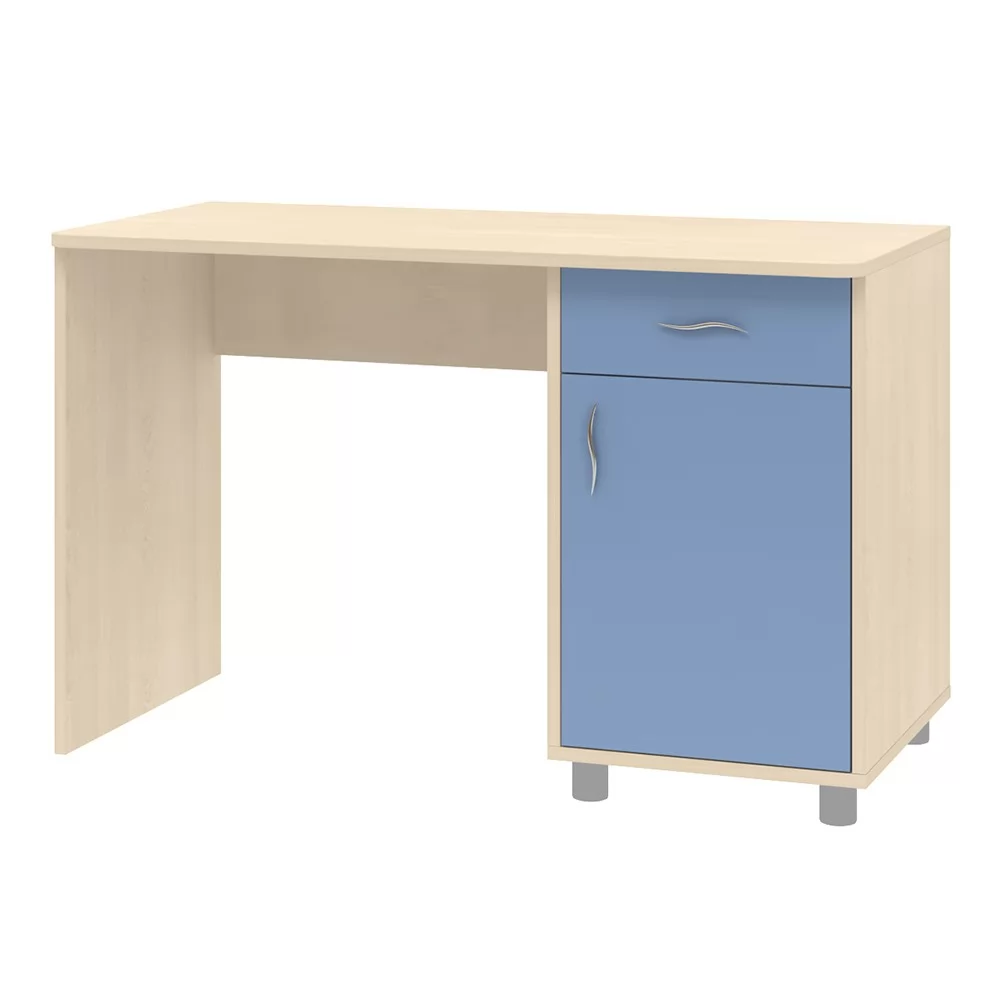 Письменный стол - это удобное рабочее место для детской комнаты. Этот предмет мебели включает в себя вместительный выдвижной ящик, а также за распашной дверью полка, на которых удобно хранить книги и канцелярские принадлежности. Стол универсальный, поэтому при сборке можно выбрать левое или правое расположение тумбы.