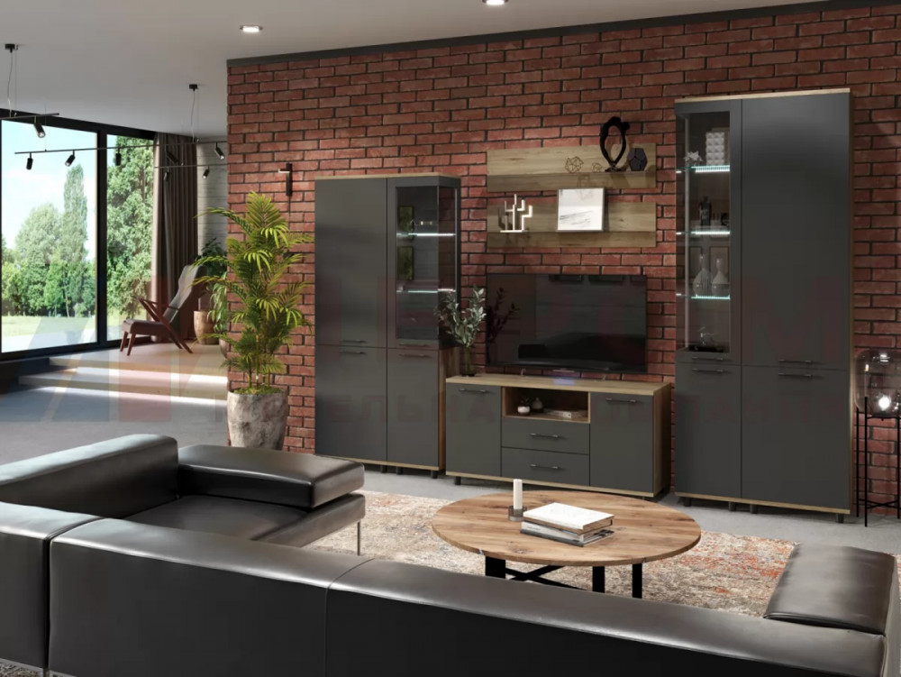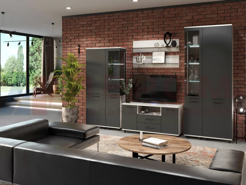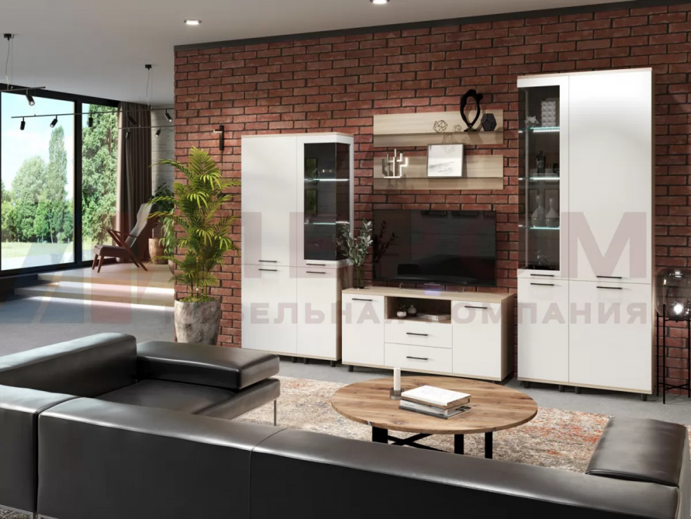 СИДНЕЙ-1 Центральная секция (ш1850*г430*в2000мм), ЛДСП Белый/ЛДСП Ателье светлое
