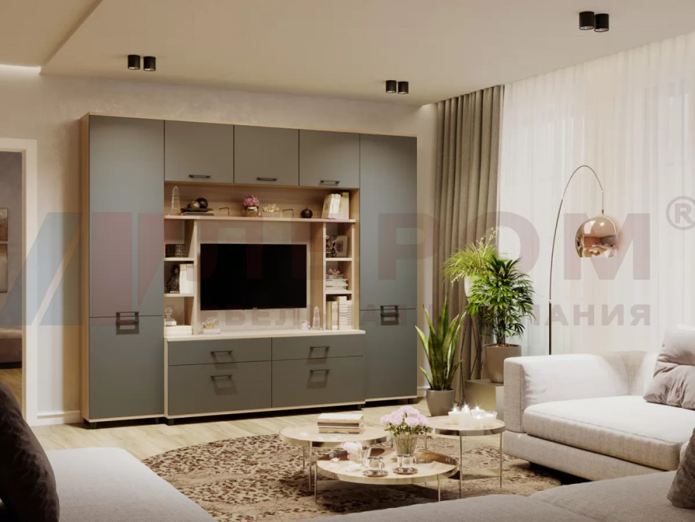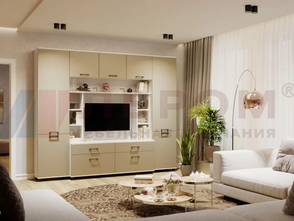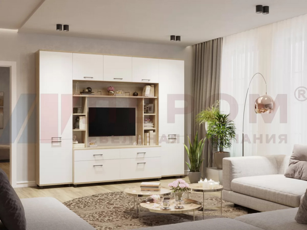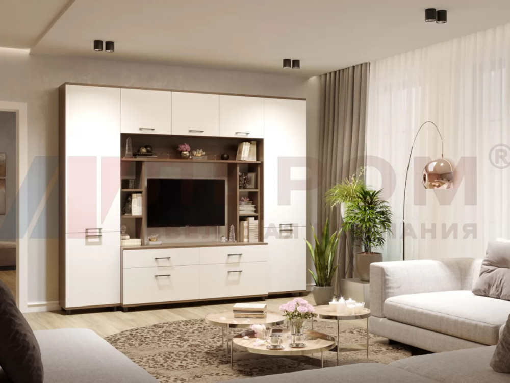 Гостиная СИДНЕЙ-2 (ш3000*г470*в2000мм), ЛДСП Белый/ЛДСП Ателье светлое
