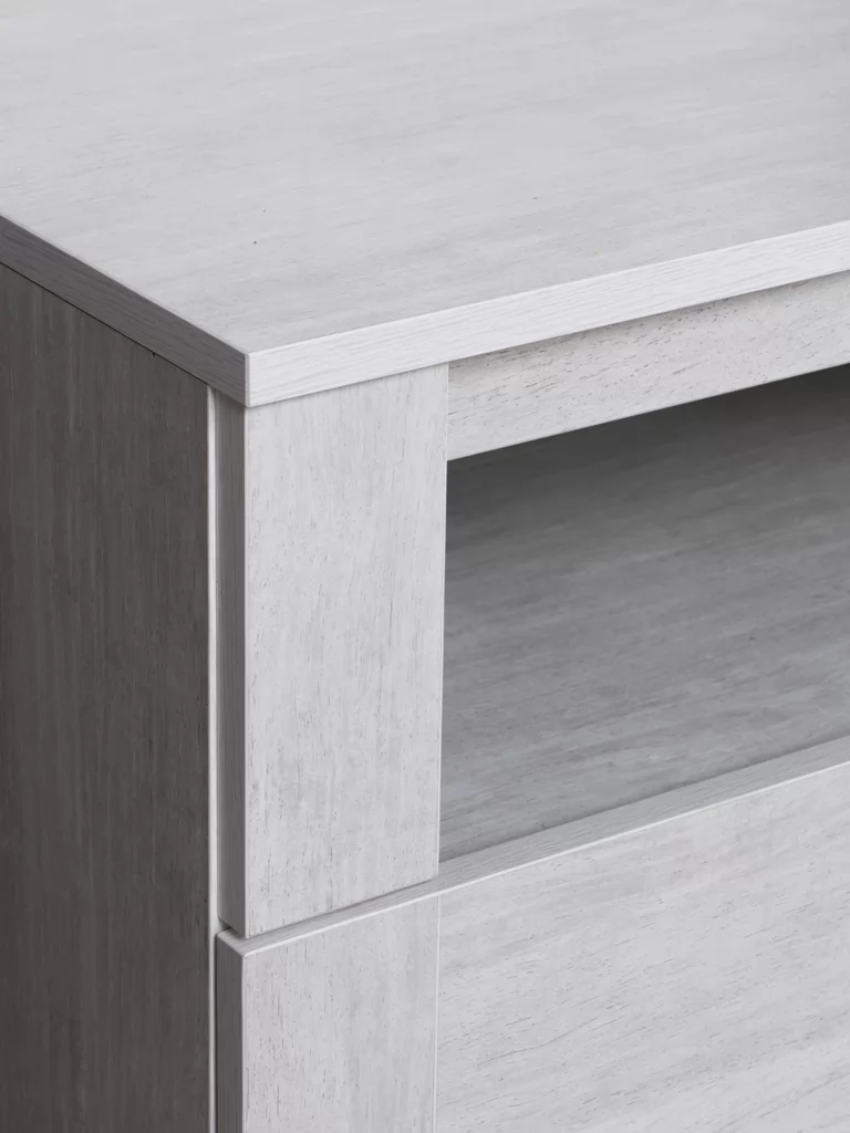 • Комбинированный шкаф №25 с закрытыми и открытыми полками, на которые поместится и комнатный декор, и предметы для повседневного использования