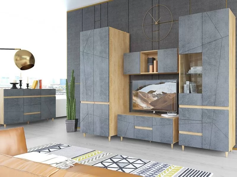 Фасады изготовлены из 16 мм МДФ плиты, укутанной пленкой ПВХ, цвет «Бетон».