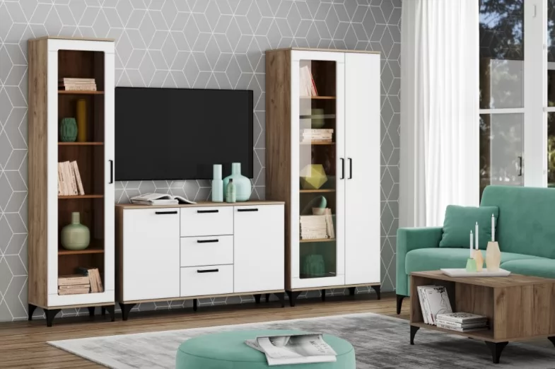 "МАРСЕЛЬ" - оригинальная коллекция мебели, которая сделает ваш интерьер современным и стильным. Благодаря высоким ножкам и длинным ручкам он привнесет в комнату нотку ретро-атмосферы. Теплый оттенок дерева сделает комнату более уютной. Витрина является элементом коллекции, характеризующейся гармоничным сочетанием эффекта дерева с темными и светлыми фасадамии. Мебель из коллекции может быть оформлена в современном стиле, с элементами индустриального и ретро стиля. Это идеальная коллекция для любителей нетривиальных решений в интерьере, она не перегружает, но станет отличным дополнением к оформлению помещения.