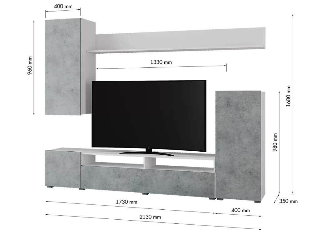 Размер ниши под ТВ: 1330 * 1152 мм