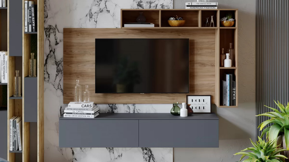 Модульная гостиная «Порто» Яблоня Беллуно, Графит софт в Урае