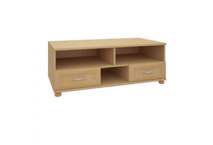 Тумба под ТВ широкая 1260 отличается простотой и надежностью. Широкая тумбочка с тремя открытыми нишами и двумя выдвижными ящиками порадует своей функциональностью. На тумбочке достаточно места для размещения телевизора любой диагонали.