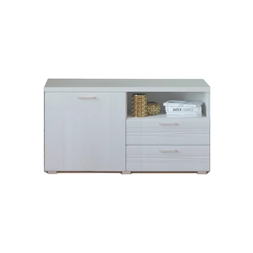 Фасадная часть - фрезерованная плита МДФ в пленке ПВХ. В серии используется ручка-скоба 96 мм (сатин светлый). Корпус - ЛДСП 16 мм. Тумбы комплектуются регулируемыми опорами L-20. Выдвижные ящики снабжены шариковыми направляющими полного выдвижения.