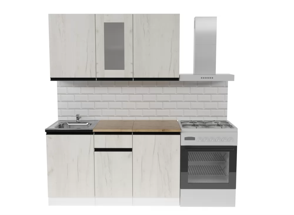 Мойки, смесители и посудосушители в комплекты гарнитуров не входят.