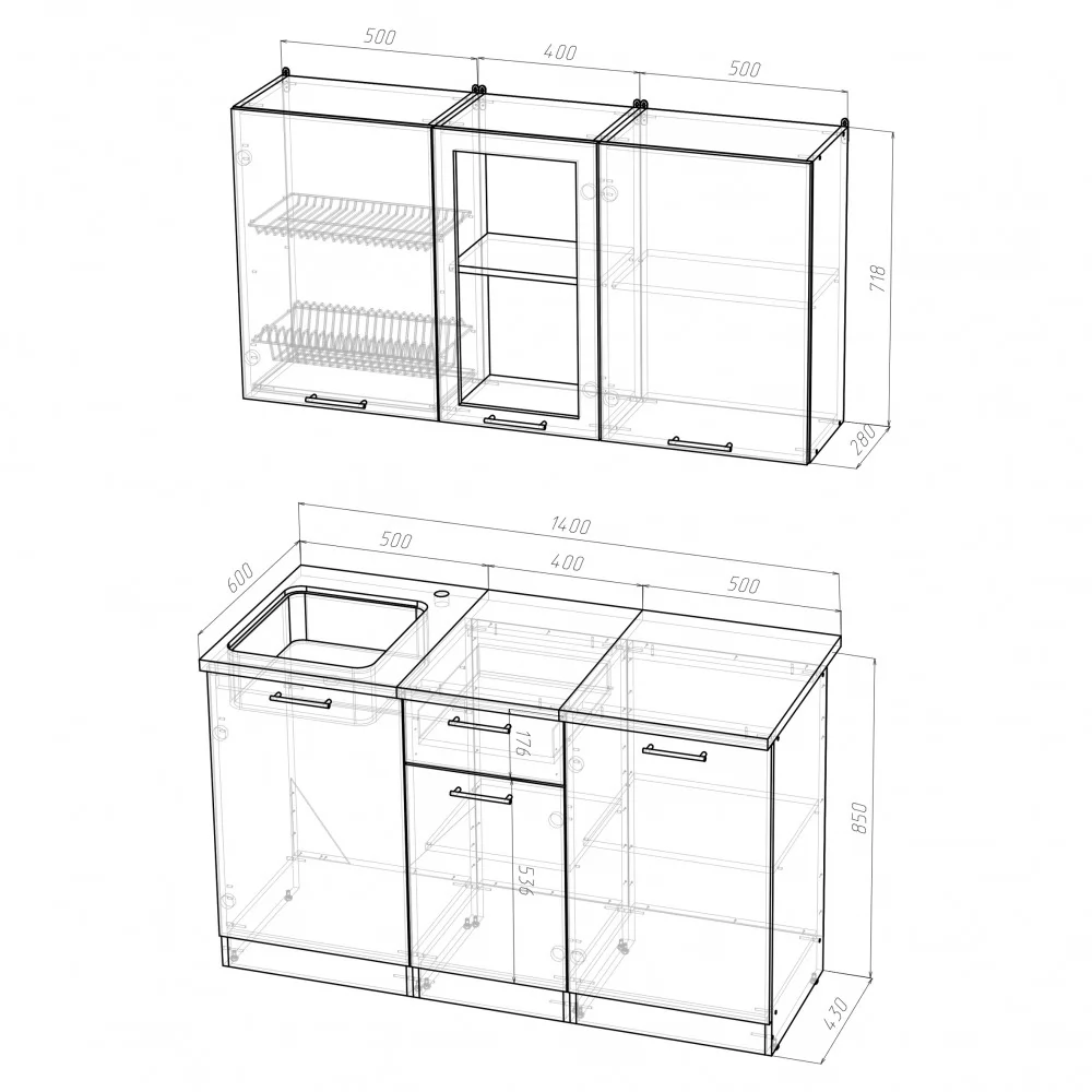 | *Ширина гарнитура | 1400 мм |