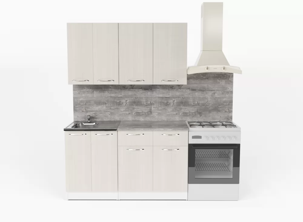 Кухня ВАНДТ 1,5м (б/сушки, б/мойки 500), ЛДСП Белый/МДФ Айвори/Лунный Кратер Б/СТОЛЕШН