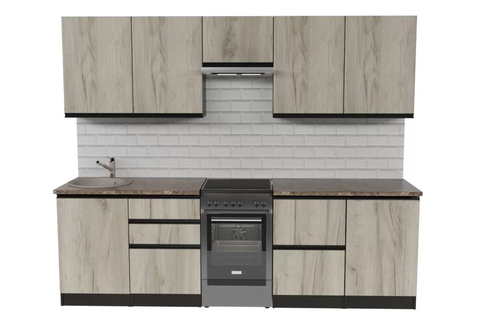 Кухонный гарнитур Равенна из ЛДСП в модном цвете "Дуб браун" впишется в современный дизайн интерьера. Подойдет как для частного дома, так и для небольшой квартиры. Напольные и подвесные шкафы позволят разместить всю кухонную утварь. Гарнитур состоит из набора шкафов, которые органично комбинируются между собой. Ящики, полки, навесные шкафы, тумбы и пеналы можно менять местами, создавая практичное рабочее пространство.