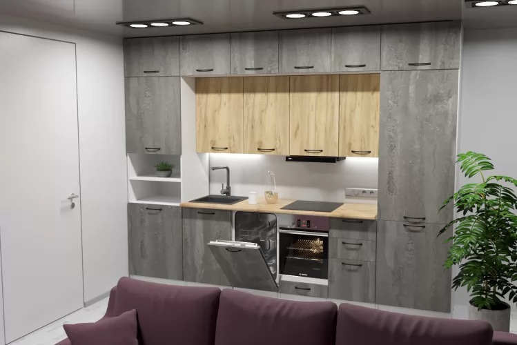 Пенал под встраиваемую технику (Ш × Г × В): 600 × 566 × 2 140 мм.
