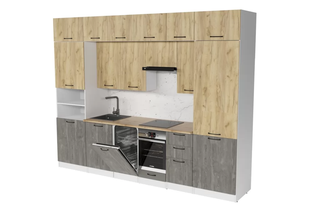 Мойка, смеситель, посудосушитель и бытовая техника в комплект гарнитура не входят.