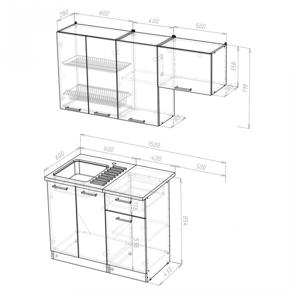 *Ширина гарнитура1500 мм