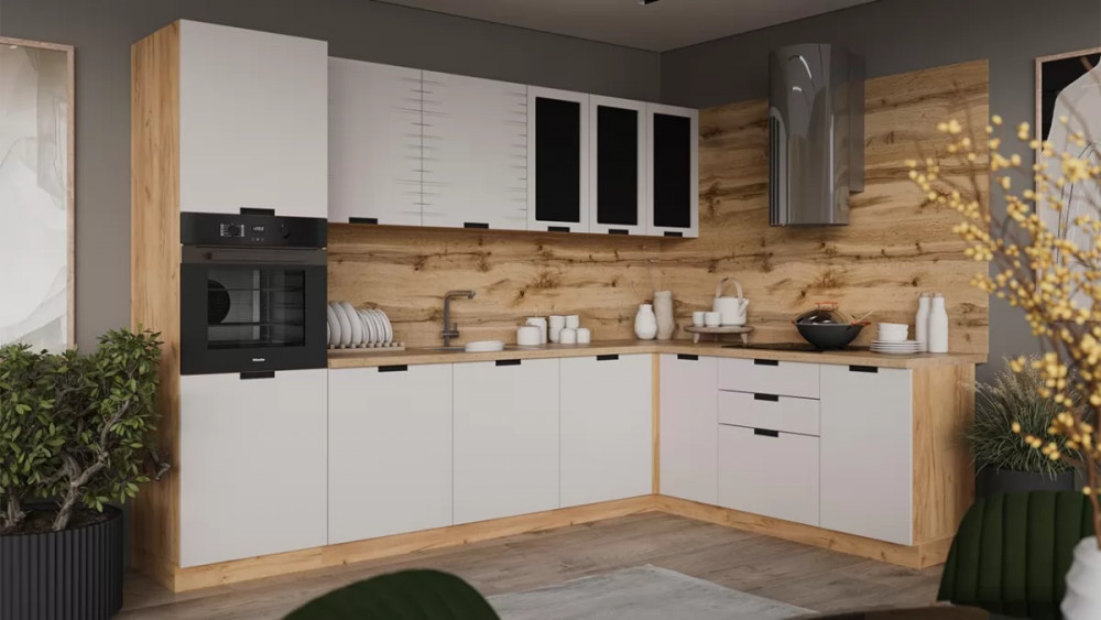 Кухонный гарнитур «Гренада» №6 Дуб Крафт золотой, Холст мокко в Урае