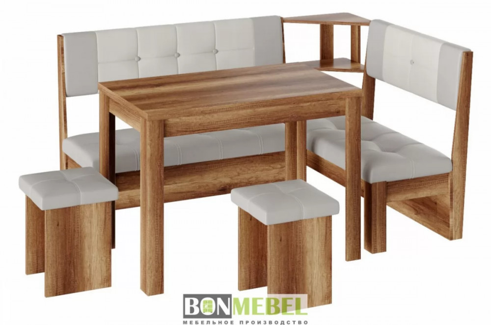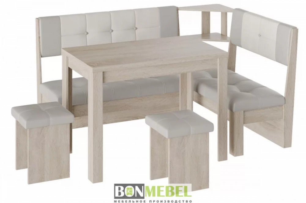 Кухонный уголок Уют 9 поможет выгодно решить вопрос с оформлением комфортабельной обеденной зоны. Привлекательный стиль исполнения комплекта будет легко гармонировать со многими интерьерами. Вы сможете выбрать ориентацию угла скамьи при сборке, благодаря универсальной сборке. Конструкция предполагает наличие нескольких эргономичных полочек. Обивка из экокожи не требует специального ухода, устойчива к истиранию и загрязнениям. В качестве материала изготовления моделей используется ЛДСП.