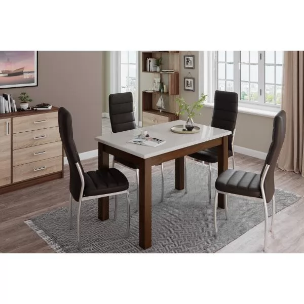— Стол Бостон-1 имеет на выбор профильные опоры из МДФ, облицованные высококачественной финиш-пленкой Орех Шоколадный или Дуб Крафт Белый
