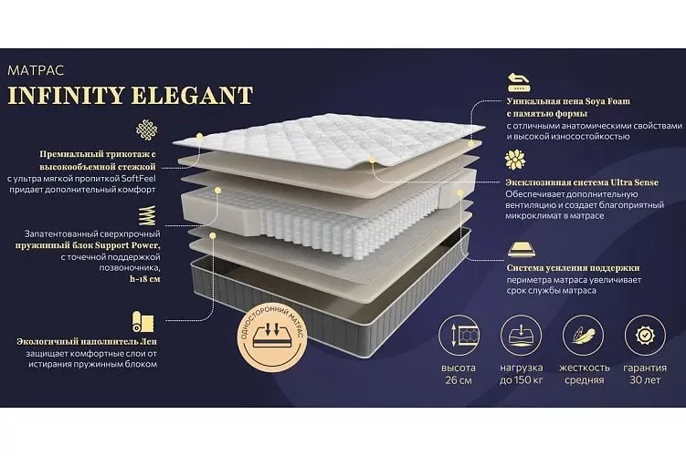 Матрас INFINITY ELEGANT 1400*2000мм (Пена/лен, ср.жесткий, h 26см) в Урае