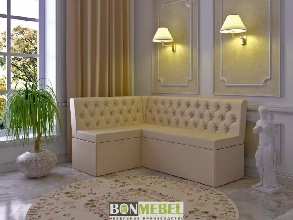 Очаровательная скамья угловая с элегантной стяжкой капитоне на спинке сделает уютной любую кухню, предоставив возможность организовать обеденную зону в компактной кухне. У этой модели масса преимуществ: универсальный угол, вместительный отсек для хранения бытовых мелочей и белья. Удобная скамья и спинка углового дивана делают пребывание за столом необыкновенно комфортным. Обивка из искусственной кожи – идеальный вариант для кухонной мягкой мебели, поскольку практически не требует усилий при уборке.