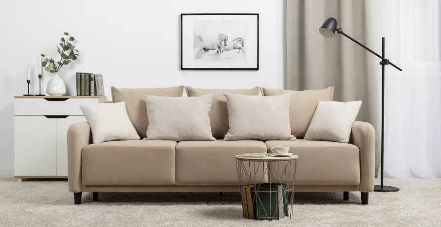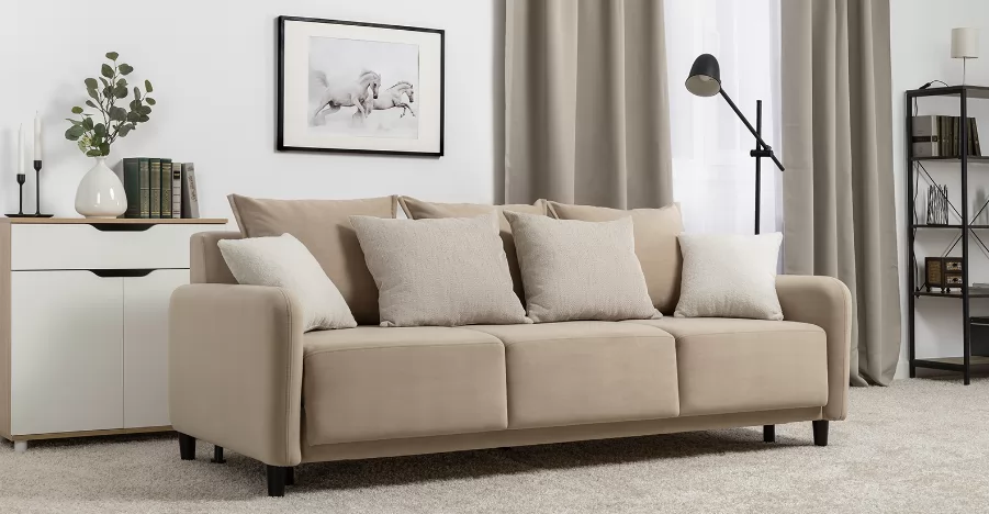 Объемные подушки обеспечивают комфортный отдых. В комплекте 5 двусторонних приспинных подушек и 2 декоративные подушки-думки в ткани букле. Надежный механизм трансформации и ровное спальное место обеспечивают полноценный сон.
