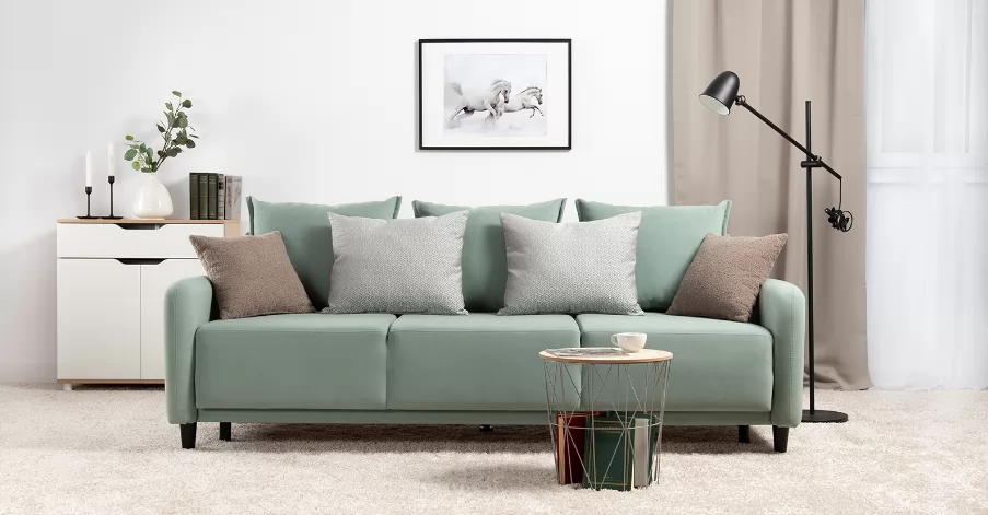 Объемные подушки обеспечивают комфортный отдых. В комплекте 5 двусторонних приспинных подушек и 2 декоративные подушки-думки в ткани букле. Надежный механизм трансформации и ровное спальное место обеспечивают полноценный сон.