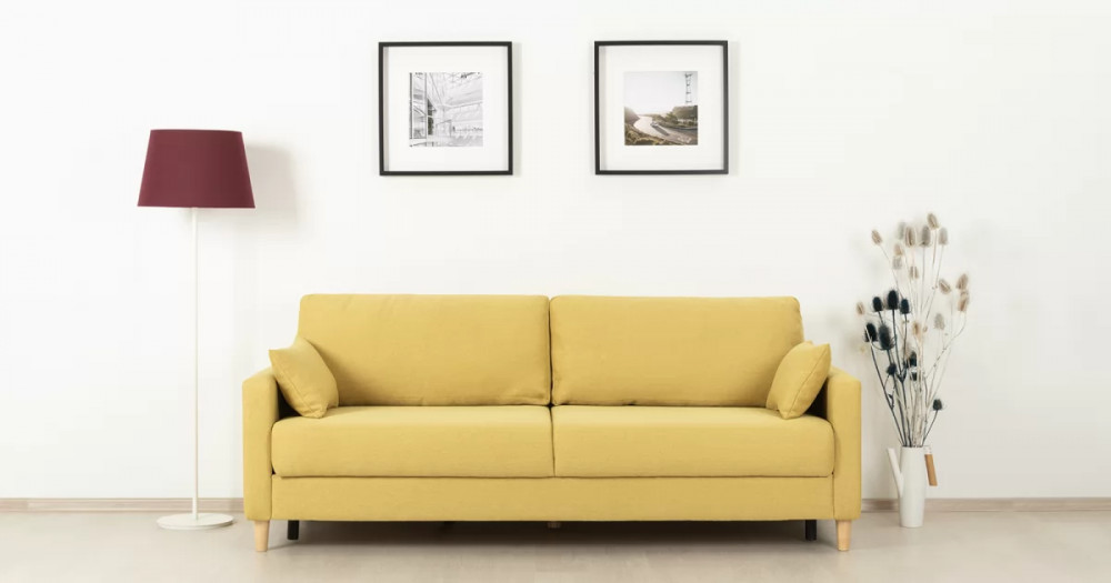 Дилан Диван-кровать арт. ТД 424Габаритысложенный (Д x Г х В, мм): 2170 x 960 x 880разложенный (Д x Г х В, мм): 2170 x 1370 x 620спальное место (Д x Ш, мм): 1910 x 1370высота посадки (мм): 460глубина сиденья (мм): 570высота спинки (мм): 420высота подлкотника от сиденья (мм): 160максимально допустимая нагрузка: 80 кг на одно посадочное место, 100 кг на одно спальное местоМеханизм трансформацииЕврокнижка с механизмом раскладки «тик-так»Бельевой ящикестьс перегородкой по центру (2 отделения)размер отделения (Д x Ш, мм):  786 x 688 x 120Материалыосновная ткань: Лаунж (шенилл) / Сага (рогожка)выполняется в тканях: Сага еллоу (желтый)каркас: фанера
