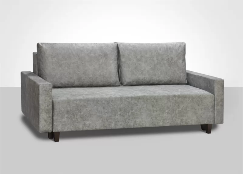 Классический минимализм. Узкий подлокотник, комфортные подушки со съемными чехлами, широкое спальное место.