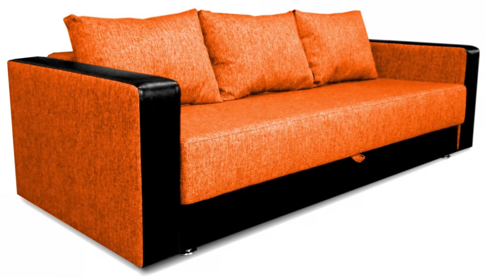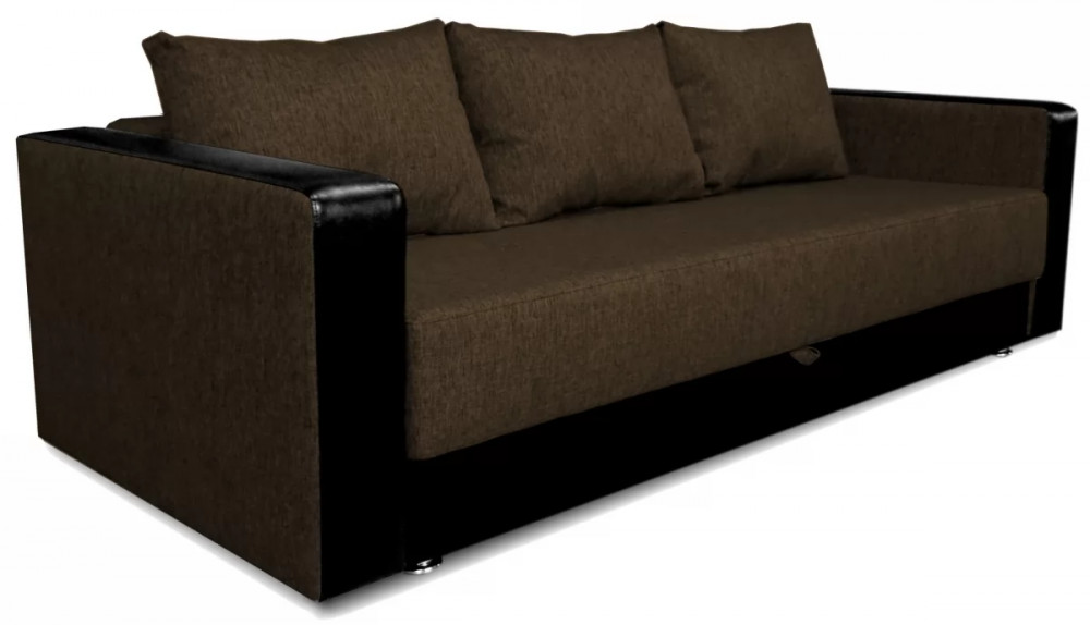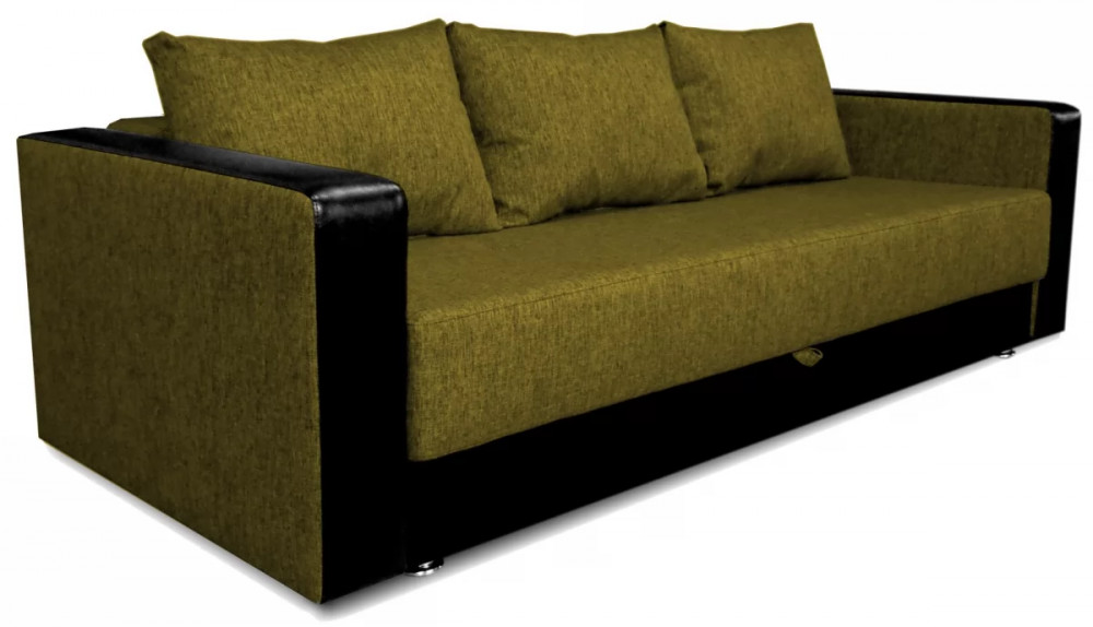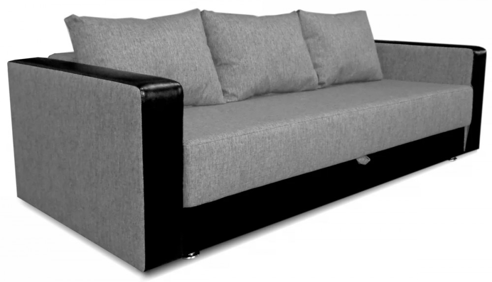 Трансформация дивана в спальное место происходит по принципу «еврокнижка»: сиденье выдвигается вперед, а подушка спинки опускается в образовавшееся пространство.