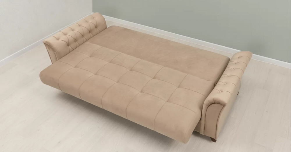 Габаритысложенный (Д x Г х В, мм): 2450 x 1060 x 890спальное место (Д x Ш, мм): 1950 x 1310высота посадки (мм): 460глубина сиденья (мм): 540максимально допустимая нагрузка: 80 кг на одно посадочное место, 100 кг на одно спальное местоМеханизм трансформации-Книжка с 0 стенойБельевой ящик-есть  перегородкой по центру (2 отделения)размер отделения (Д x Ш, мм): 890 x 840 x 200каркас: фанерадеревянный брус