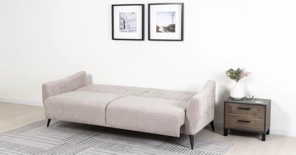 Посадочная и спальная зоны при раскладывании равны, что обеспечивает хороший сон. Механизм трансформации - книжка. Раскладной диван представляет больше возможностей для обустройства интерьера. Черные металлические ножки дивана высотой 160 мм позволят использовать его в интерьере лофт.