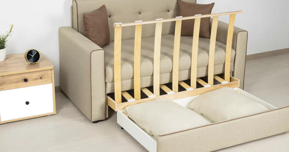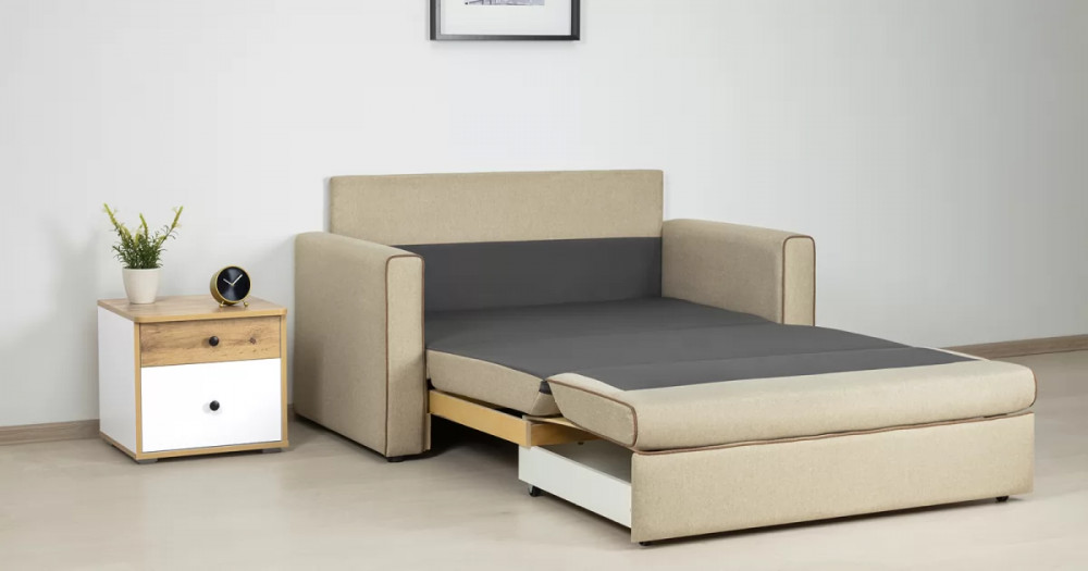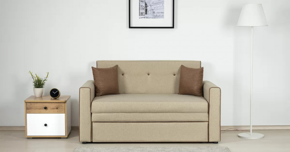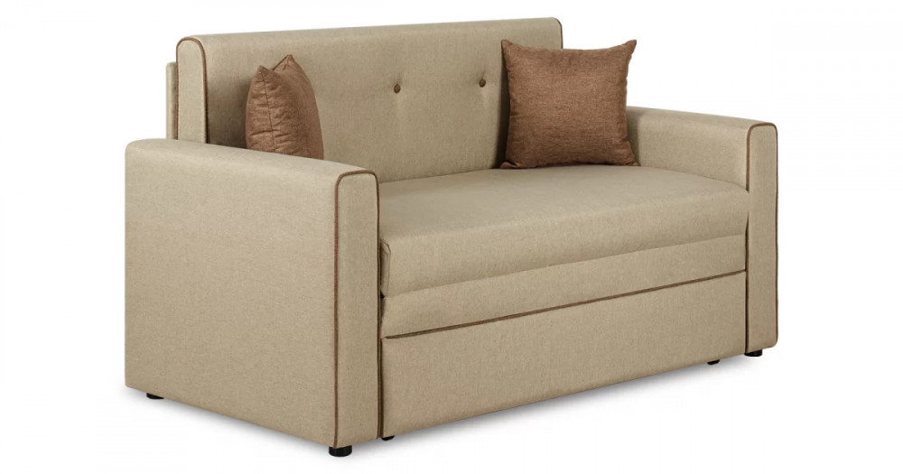 Габаритысложенный (Д x Г х В, мм): 1460 x 800 x 840разложенный (Д x Г х В, мм): 1460 x 2000 x 770спальное место (Д x Ш, мм): 1950 x 1200высота посадки (мм): 460глубина сиденья (мм): 650высота подлокотника от сиденья (мм): 120максимально допустимая нагрузка: 80 кгМеханизм трансформацииВыкатной с гнутоклееными латамиМатериалыосновная ткань: Алма (рогожка) / Тесла (жаккард)выполняется в тканях:  Тесла крем (бежевый), Тесла коттон (коричневый)