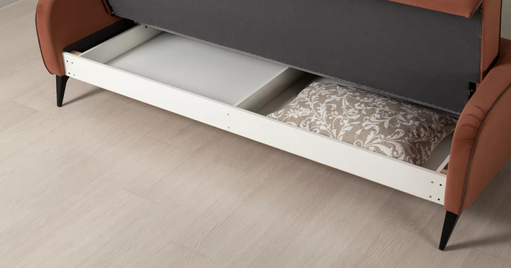 Ноэль Диван-кровать арт. ТД 445 - приложениеГабаритысложенный (Д x Г х В, мм): -2210 x 910 x 860разложенный (Д x Г х В, мм): -2210 x 1130 x 690спальное место (Д x Ш, мм): -1920 x 1130высота посадки (мм): -460глубина сиденья (мм): -590высота спинки (мм): -450высота подлокотника от сиденья (мм): -150-220максимально допустимая нагрузка: -80 кг на 1 посадочное местоМеханизм трансформации-КнижкаБельевой ящик-есть с перегородкой по центру (2 отделения)размер отделения (Д x Ш, мм): 740 x 885 x 885Варианты исполнения-5 артикуловсочетание тканей только как на фотоМатериалыосновная ткань: -Velutto (велюр)выполняется в тканях: Velutto 55 (терракотовый)/Velutto 36 (шоколадный)каркас: фанера