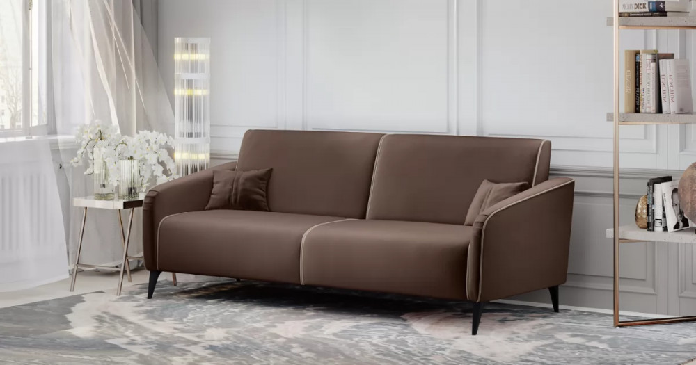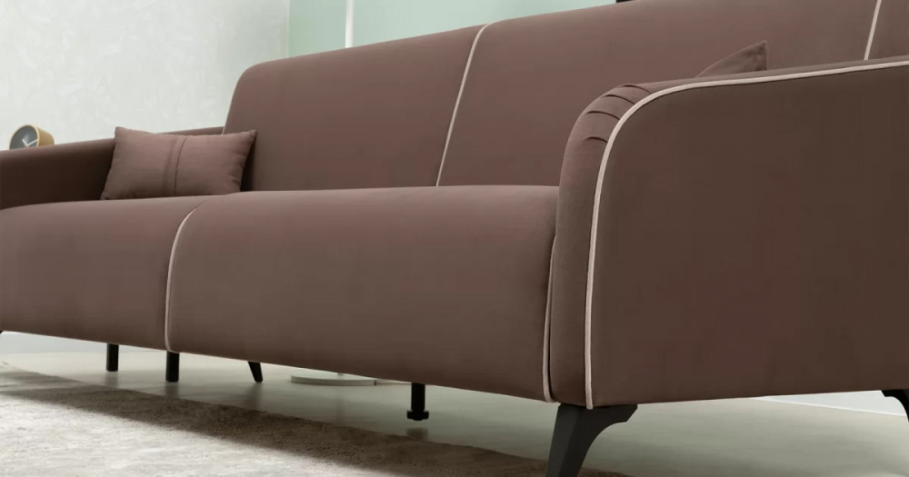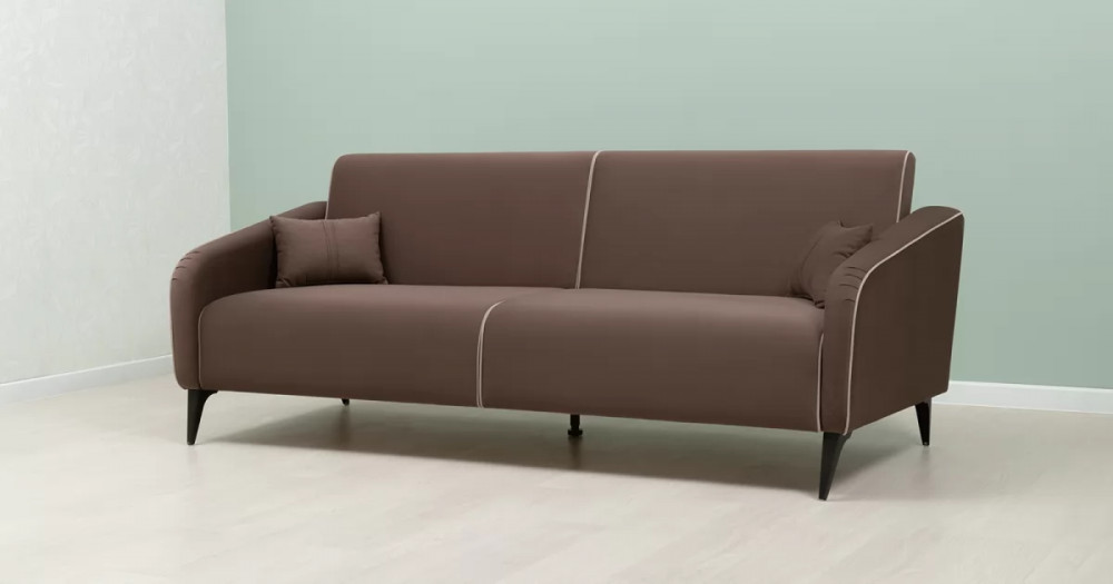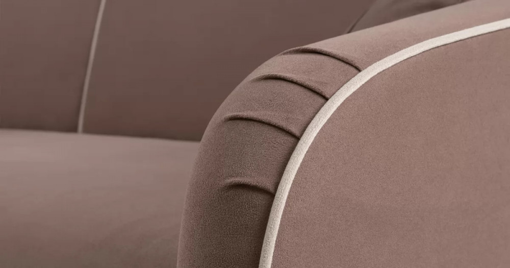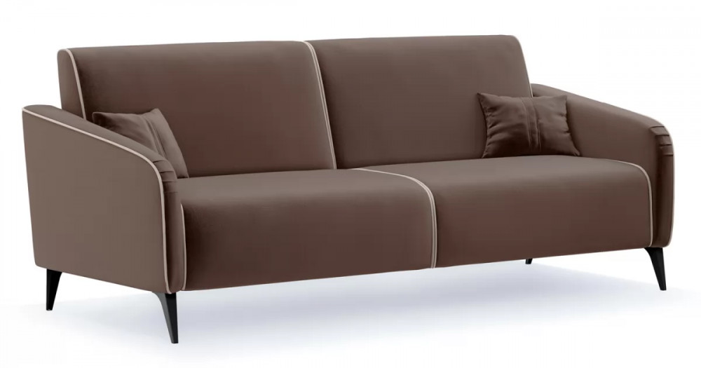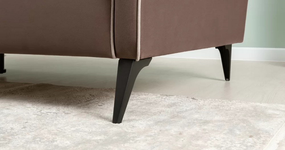 ДВПдекоративные подушки, шт: -2наполнитель подушек: -крошка ППУ и полиэфирное волокно «шарики»материал опор: металлцвет опор: черныйвысота опор (мм): 165ДекорСпинка и сиденье разделяются пополам двойным кантом по центру и одинарным по краям сидения, для придания одной единой формы. Подлокотники с изгибом на лицевой стороне и мягкими закругленным углом со складками, с выраженным контрастным ровным кантом по внешнему контуру изделия и изогнутой линией канта.Назначениев гостиную