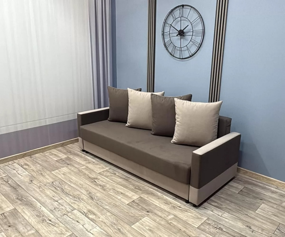 Простой в эксплуатации, надежный, качественный диван. Механизм трансформации «Пантограф» (тик-так) позволяет формировать ровное спальное место. Диван оснащен пристенной спинкой и вместительным коробом для спальных принадлежностей. Гармоничные сочетания тканей позволят оживить любой интерьер. Съемные подлокотники упрощают процесс транспортировки.