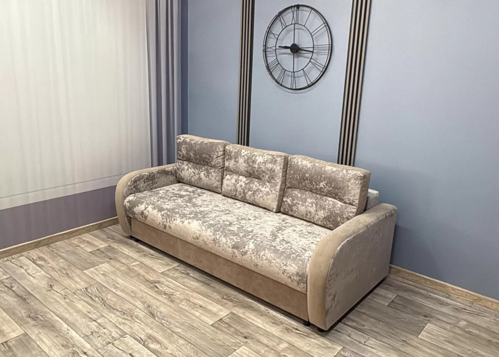 Прекрасное сочетание элегантности и изящества. Классическая модель идеально дополнит любой интерьер. Механизм трансформации «Пантограф» (тик-так) позволяет без особых усилий формировать ровное спальное место. Так же имеется вместительный короб для постельных принадлежностей.