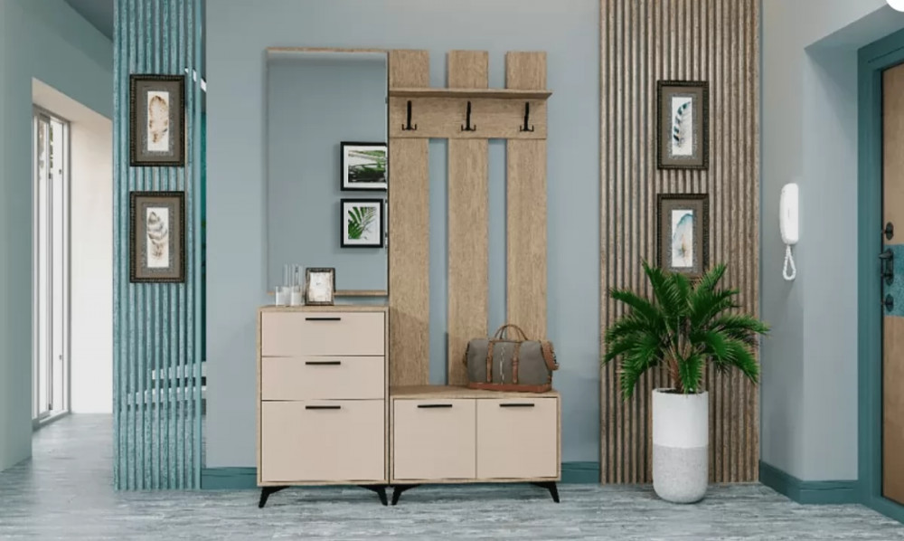 ЕВА Прихожая, ЛДСП Дуб экспрессив песочный / ЛДСП Сатин в Урае