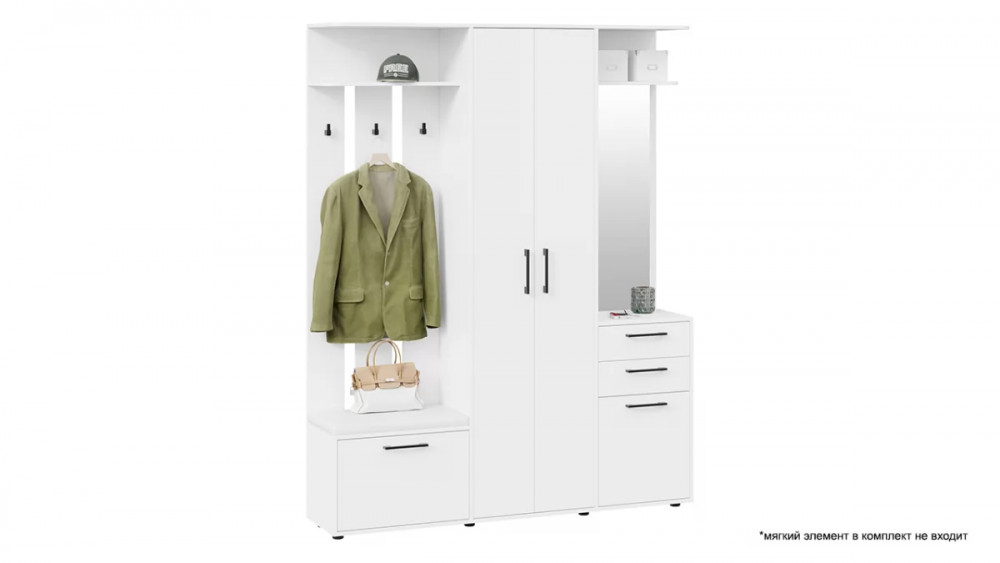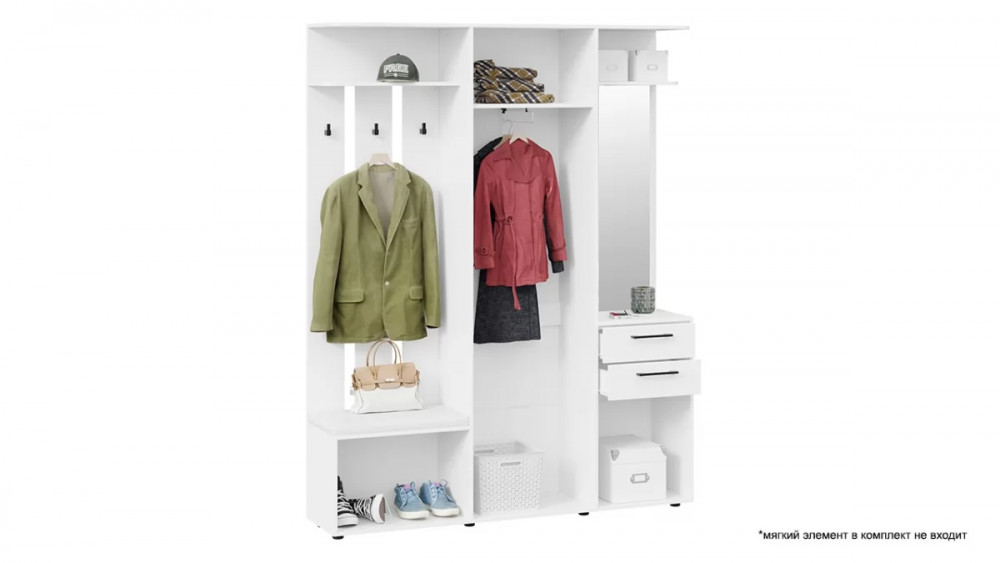 Назначение: Мебель для хранения Зеркало: Да Гарантийный срок: 24 месяца Комната использования: Прихожая Материал кромки каркаса: ПВХ Стиль: Современный Тип: Гарнитур в прихожую Расположение: Напольный Тип направляющих ящиков: Роликовые Материал ножек/опоры: Пластик Наполнение: Полка ЛДСП, штанга выдвижная, ящики Материал каркаса: ЛДСП Материал ручек: Пластик Производство: Россия Количество посадочных мест: 1 Габаритная ширина: 1 600 Габаритная высота: 2 050 Форма предмета: Прямоугольный Габаритная глубина: 360 Модель: Витра тип 2 Срок службы: 5 лет Материал фасада: ЛДСП Оттенок: Белый Цвет: Белый Ясень Цвет каркаса: Белый Ясень Цвет фасада: Белый Ясень Оттенок каркаса: Белый Оттенок фасада: Белый Тип сборки: Универсальный левый/правый Заглушина для ящика кровати в комплекте: Нет Наличие механизма раскладки: Нет Наличие спального места: Нет