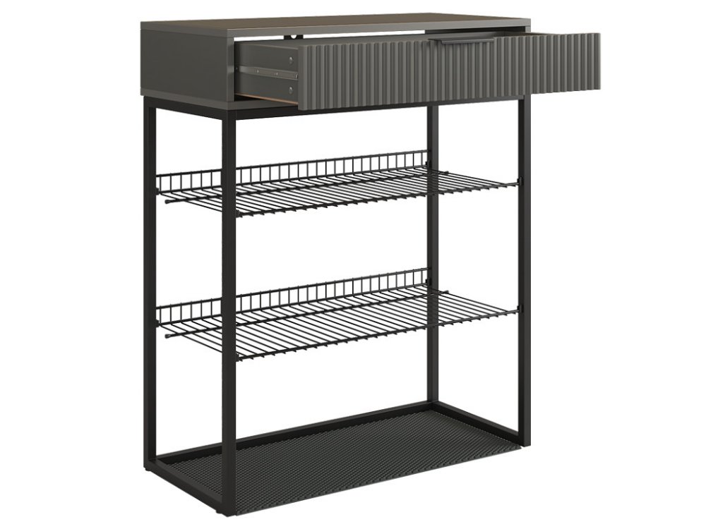 Обувница Вельвет прекрасно сочетает в себе стиль и функциональность. Её дизайн в стиле лофт идеально подходит для современных интерьеров. Выдвижной ящик с шариковыми направляющими обеспечивает бесшумное и плавное открывание, предоставляя удобный доступ к вашим аксессуарам и мелочам. Регулируемые опоры и специальный коврик обеспечивают дополнительный комфорт и защиту.