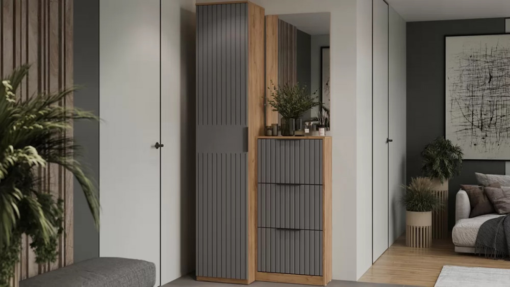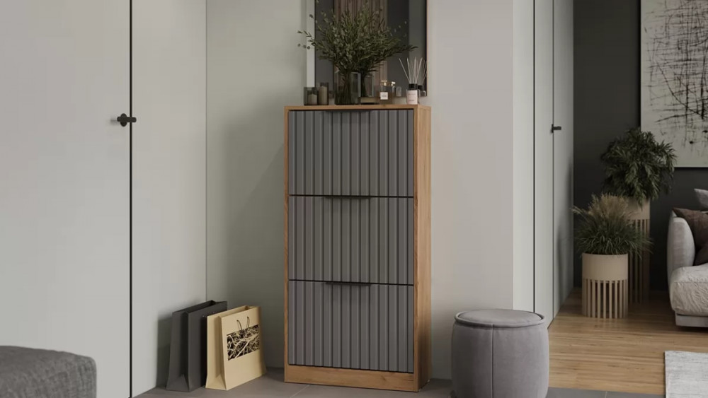 Тумба для обуви «Хилтон» Дуб Крафт золотой, Графит матовый в Урае