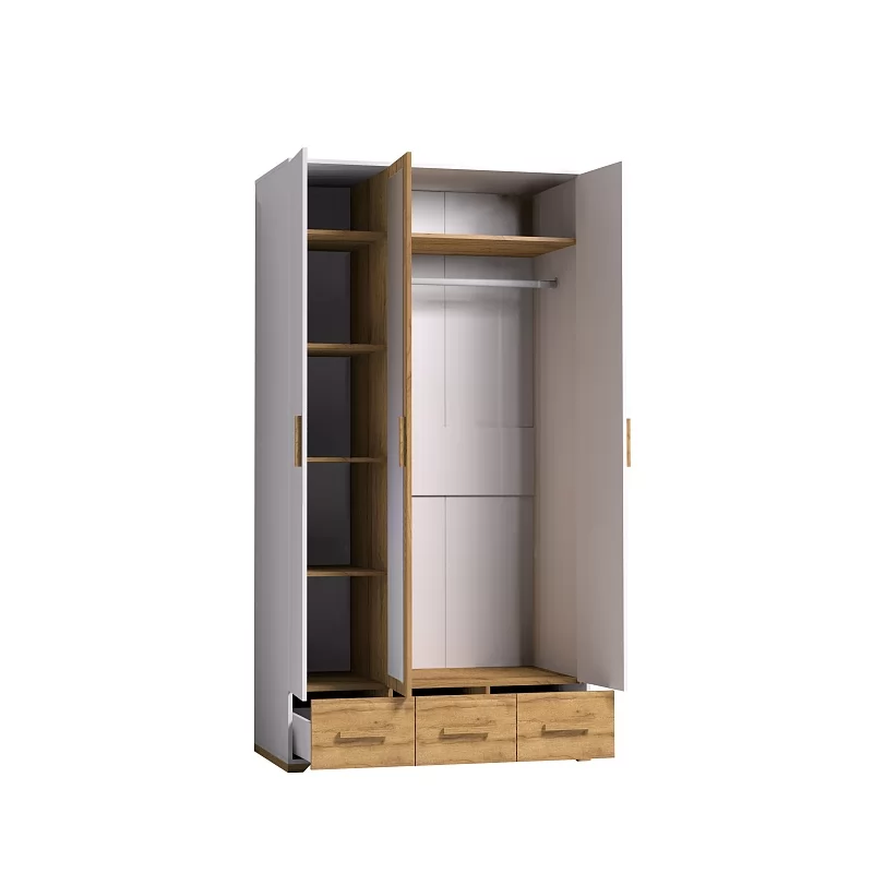 Трехстворчатый шкаф для одежды и белья Айрис 444 с зеркалом и выдвижными ящиками — находка для большой и маленькой спальни. Функциональное наполнение шкафа разделено, что очень удобно для зонирования гардероба всех членов семьи. Шкаф оснащен отделением для хранения белья с полками на скрытых полкодержателях и отделением для одежды со стационарной штангой 758 мм. 3 выдвижных ящика комплектуются шариковыми направляющими, что обеспечивает минимальный люфт ящиков и максимальное использование их площади. Петли с доводчиками для бесшумного закрывания дверок шкафа. Зеркало на фасаде шкафа.
