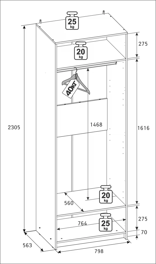 *Размеры (ВхШхГ), мм:2305х798х563 мм