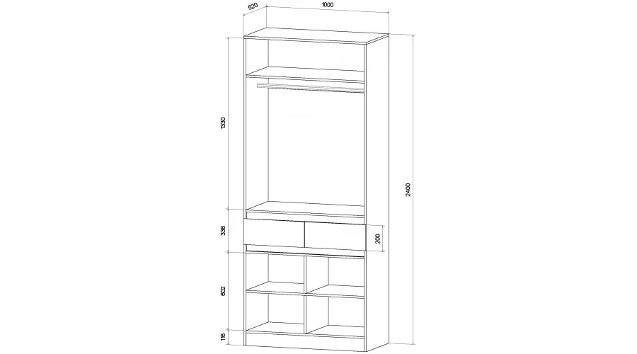 • Габариты 1000(Ш) х 520(Г) х 2400(В) мм.