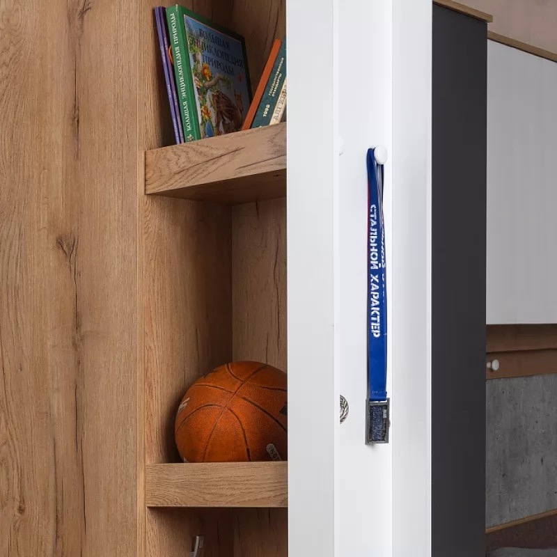 Нередко хобби ребенка перерастает в нечто большее и становится не только способом реализовать свои творческие способности, но и делом всей жизни. Уникальный выдвижной шкаф для хобби ЛОЙС 85 Шкаф МЦН с двумя зонами хранения: внутренняя закрытая зона и фасадная часть с карманами. Внутри шкафа полки с ограничителями и ниша с крючками, где можно хранить форму для тренировок, мячи, ролики, наборы для творчества и другие аксессуары для хобби. Зона хранения на самом фасаде включает в себя: карман для высоких бумаг и ватманов, ручку, выполненную виде полочки, и два крючка, на которые удобно повесить заработанные медали, скакалки, элементы декора. Выдвижная система ЛОЙС 85 Шкаф МЦН на роликах оснащена широкими шариковыми направляющими полного выдвижения. С ЛОЙС 85 Шкаф МЦН в комнате появится место для хранения вещей тесно связанных с увлечениями детей. Модуль обязательно крепить к стене!