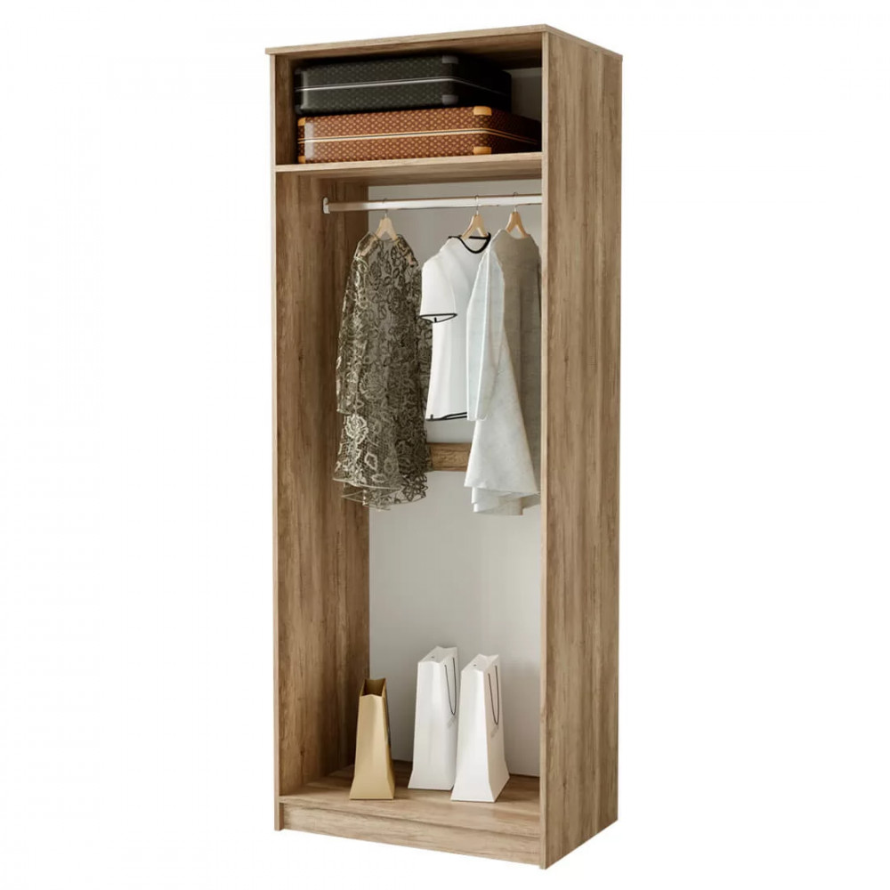 -внутреннее наполнение состоит из платяного отделения с горизонтальной хромированной штангой и просторной антресоли.