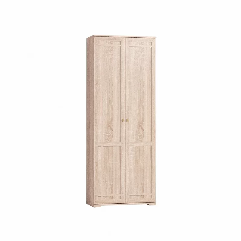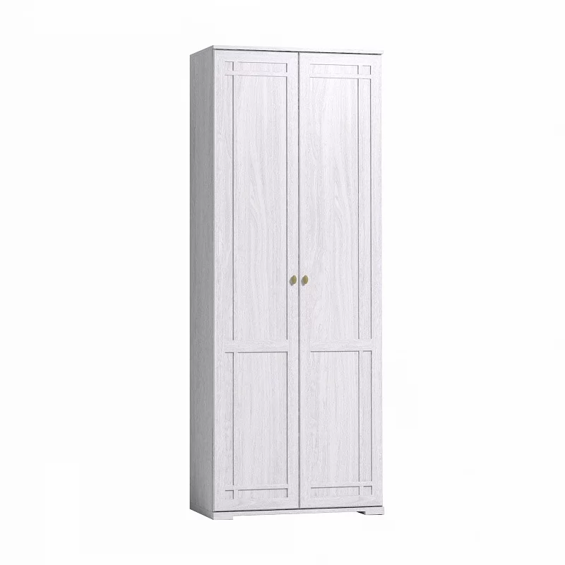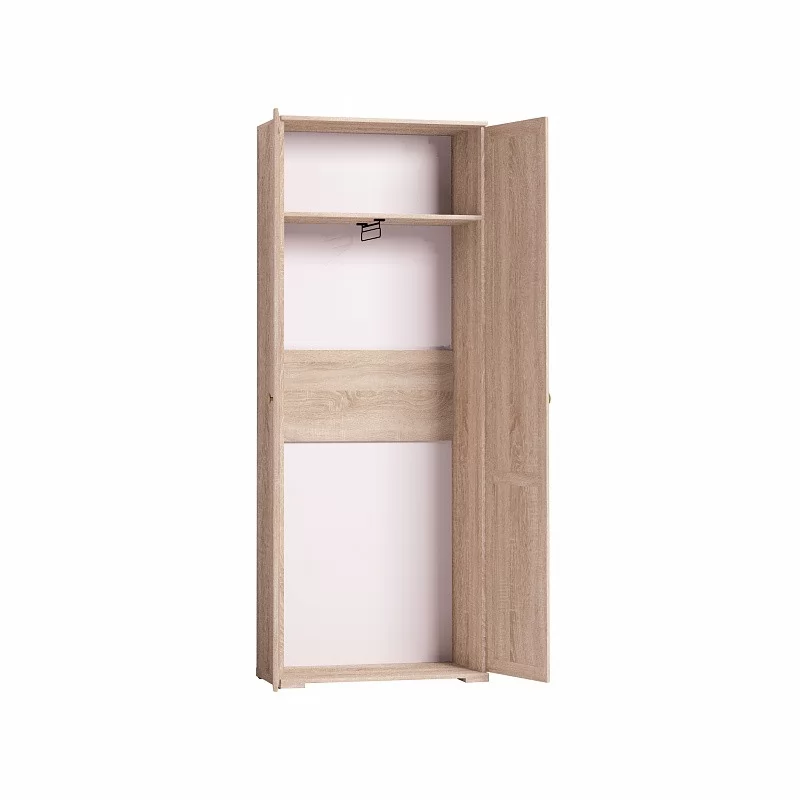 Распашной платяной шкаф с выдвижной штангой для одежды. Благодаря своей маленькой глубине (400 мм) разместится в небольшой по габаритам комнате, не заняв много места. На верхней полке можно хранить аксессуары и коробки с головными уборами.