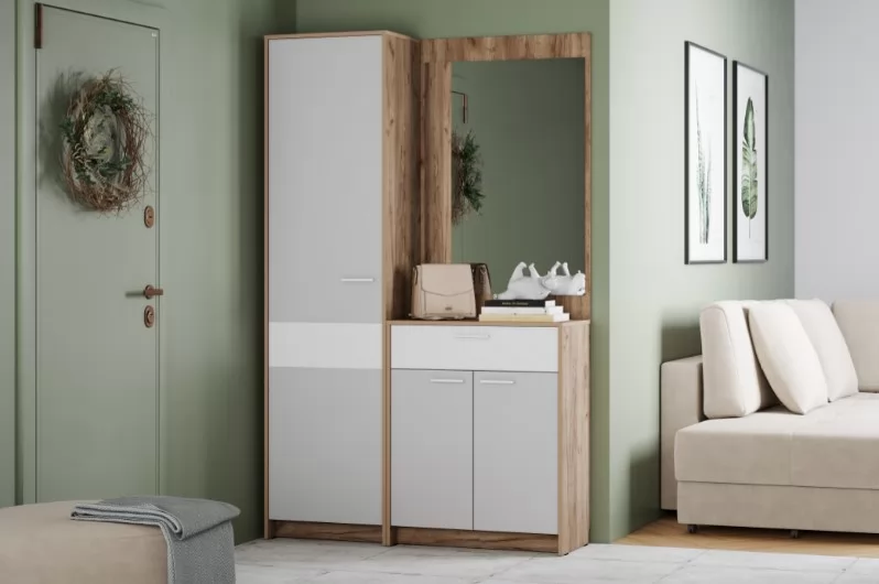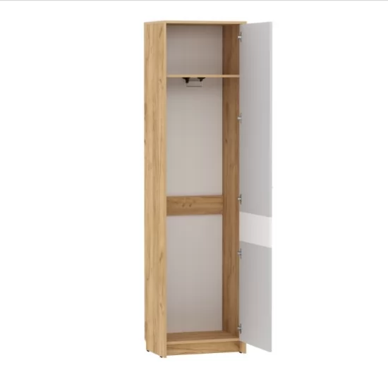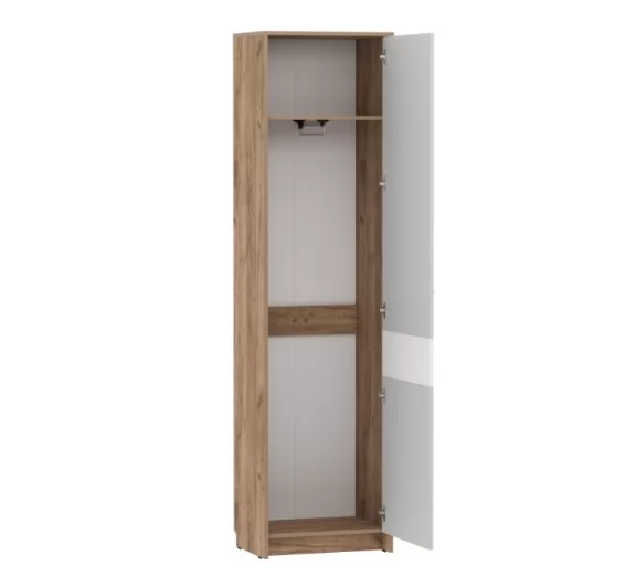 Эргономичная мебель "Нортон" не будет загромождать помещение, а преобладание светлых оттенков значительно расширяет комнату. Выразительность помещению можно внести яркими акцентами и контрастными тонами. Шкаф универсальной сборки (может быть собран для навешивания как на правую вертикальную стенку, так и на левую).