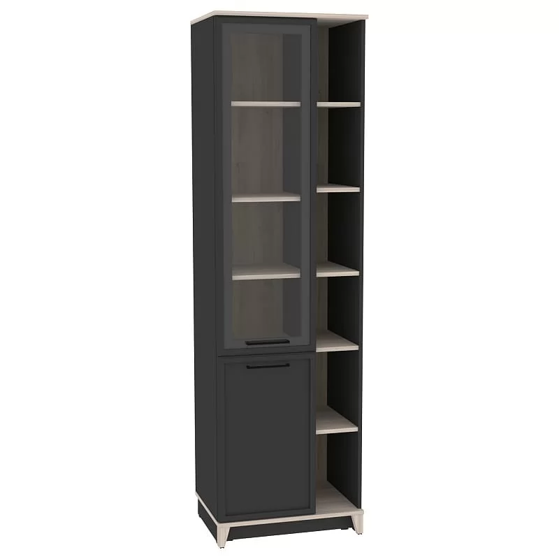 Мебель AURELIO представляет собой классическую мебель в современном исполнении. Корпус мебели изготовлен из высококачественного ЛДСП толщиной 16 мм, что обеспечивает прочность и долговечность конструкции. Фасады выполнены из МДФ с применением профиля, что придает им изысканный и стильный вид. Особое внимание стоит уделить рамочным фасадам шкафов, которые украшены стеклянными вставками и металлическими черными ручками. Это сочетание материалов придает мебели особый шарм и элегантность.