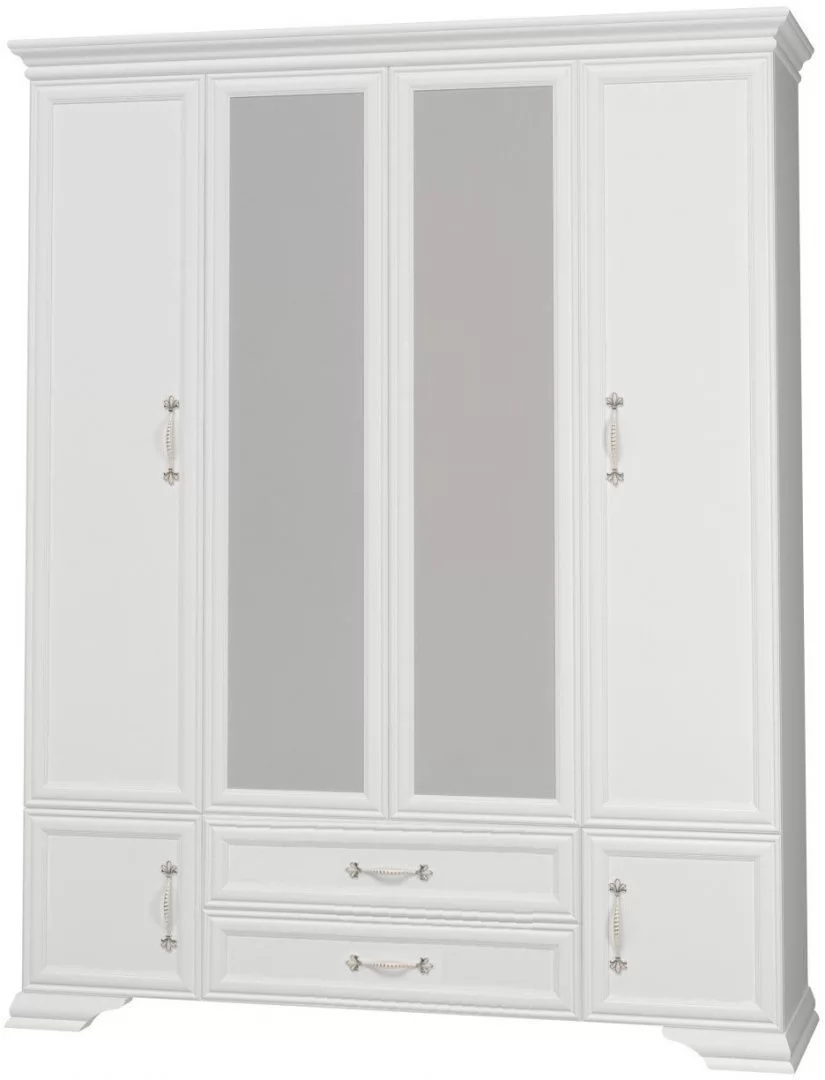 Глубина-550 мм Ширина-1750 мм Высота-2175 мм Срок службы-7 лет Гарантийный срок-18 месяцев Монтаж-Требует сборки Фрезеровка фасада-Да Количество жестких полок-4 шт Материал фасада-ЛДСП 8 мм, МДФ 22 мм, Зеркало Материал корпуса-ЛДСП 16 мм Материал полок-ЛДСП Вариант отделки фасада-Облицованный МДФ профиль Количество дверей-4 шт Фурнитура-Петли с доводчиком, шариковые направляющие полного выдвижения, Штанга для одежды Коллекция-Спальня «Грация» Цвет корпуса-Белый Цвет фасада-Белый глубокие поры, Белый лак Количество вкладных полок-2 шт Количество выдвижных ящиков-2 шт Фасады с древесной или текстурной поверхностью-Да Корпус с древесной или текстурной поверхностью-Нет