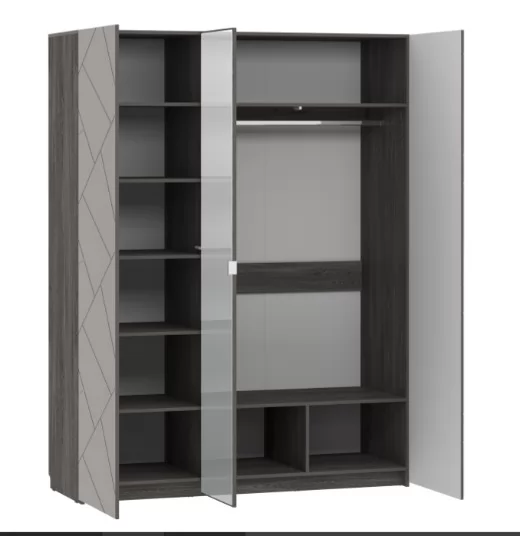 С комбинированным шкафом Summit НМ 011.44  в спальне не придется устанавливать дополнительную мебель для хранения одежды. В левой части модуля находится секция с пятью полками для белья. Правую часть шкафа занимает отделение с овальной штангой, которая способна выдержать много тяжелой верхней одежды. Антресольная полка подходит для хранения объемных вещей, а нижняя полка – для размещения коробок с обувью. Зеркальный фасад расширяет функционал шкафа и увеличивает пространство комнаты.